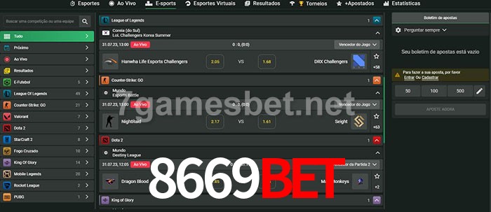 O 8669Bet oferece uma grande seleção de opções de apostas em e-sports com probabilidades competitivas